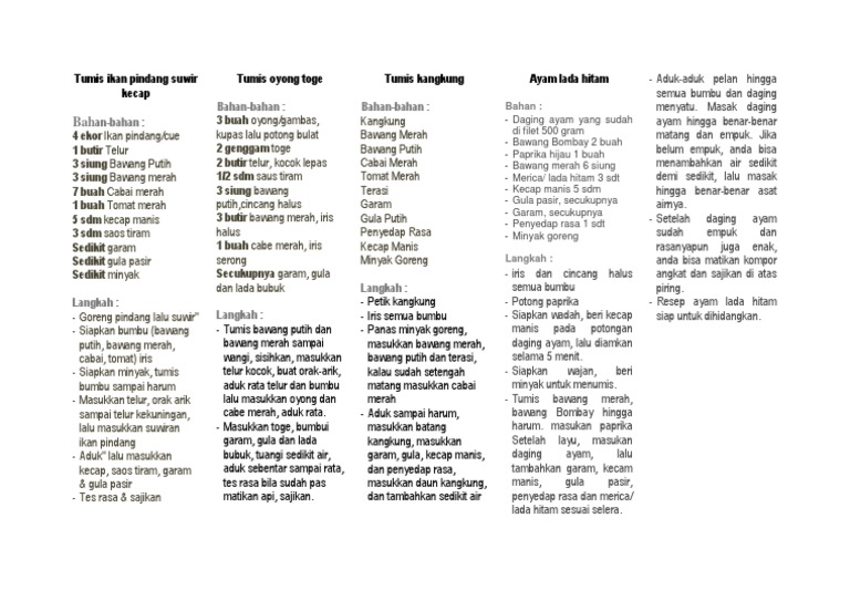 Masukkan kucai, toge dan bumbu lainnya. Tumis bawang putih dan bawang merah hingga aroma wanginya tercium lalu masukkan oncom, aduk hingga matang. Sayur toge memang paling enak diolah dengn cara di tumis, resep kali ini adalah resep tumis toge teri. Cukup stok ikan teri siap santap dan taoge segar, maka kamu bisa menumisnya. 13.375 resep tumis toge ala rumahan yang mudah dan enak dari komunitas memasak terbesar dunia!